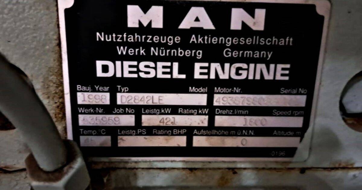 This 1998 D2842LE GENSET 400kw 500kva 1800rpm 60hz DG set represents a premium industrial power solution from MAN B&W. The diesel generator set combines the proven D2842LE engine with robust generator components for reliable power generation.
