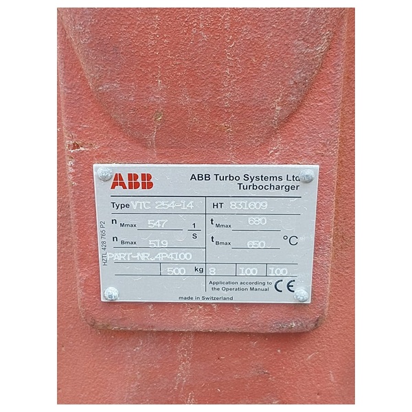 | Additional Details | TURBOCHARGER MODEL-ABB VTC 254-14 | WEIGHT: 500 Kg | TURBOCHARGER TYPE-MARINE |