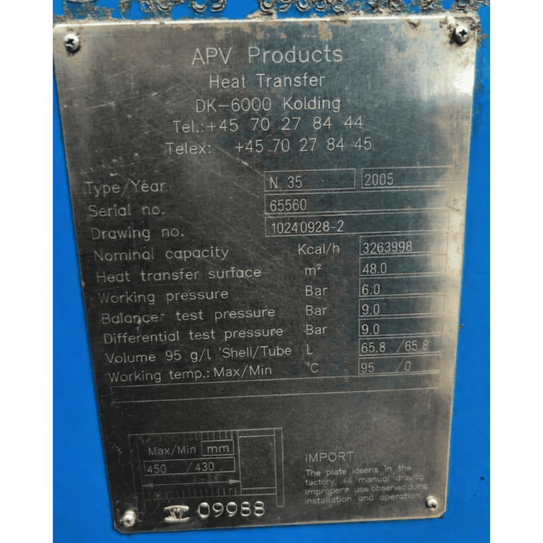 These new genuine units are engineered to meet demanding industrial requirements. With a large heat transfer surface area and robust construction, the APV N35 heat exchanger ensures efficient performance, reduced energy loss, and reliable temperature control across continuous operations.