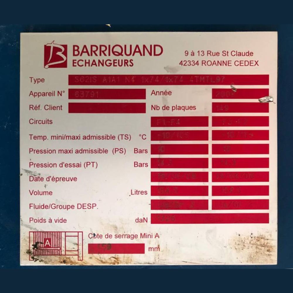 The Barriquand Exchangeurs S62IS A1A1 N4 Plate Heat Exchanger is a high-efficiency thermal transfer unit designed for demanding industrial and marine heat exchange applications. Known for precision engineering and robust construction, Barriquand plate heat exchangers are widely used in cooling, heating, and process temperature control systems where reliable and efficient heat transfer is essential.