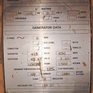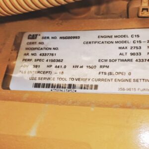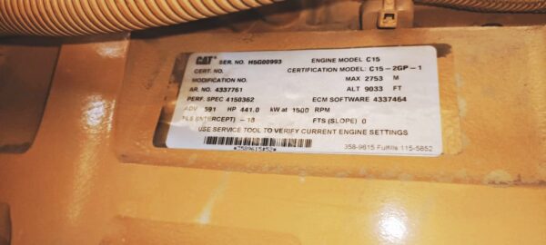 Additional Details | CATERPILLAR | Model: C15 | Sr no: H5G00993 | Power: 725 KVA | Speed: 1500 rpm | Generator Model: SR4 GENERATOR | Sr no: 2WD01603 |