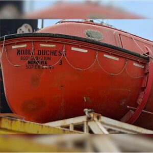 We are offering used enclosed lifeboats with 50 persons capacity, designed for safe evacuation in offshore and marine environments. These lifeboats provide superior protection against harsh weather, fire hazards, and rough sea conditions, making them an essential safety asset for vessels and offshore installations.