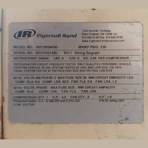 Used Ingersoll Rand NVC800A400 Refrigeration Compressor for Sale