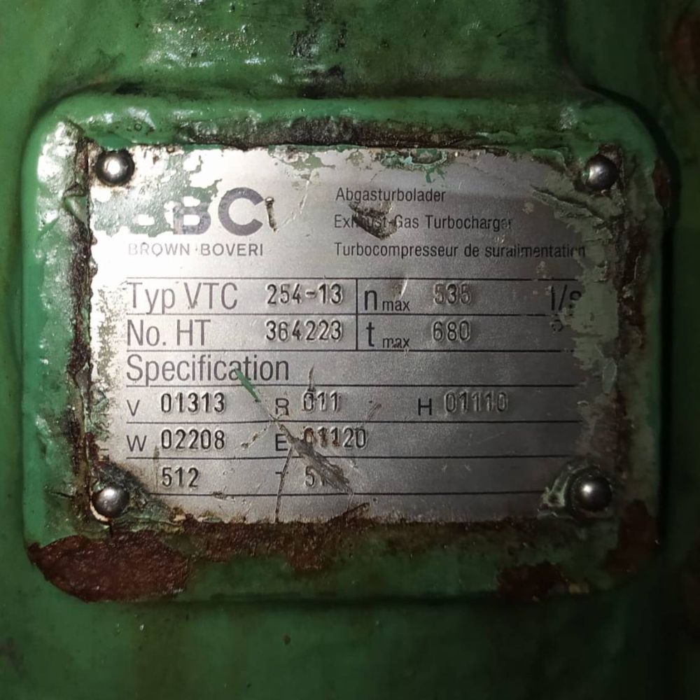 We are offering a genuine turbocharger unit (Type: VTC 254-13) manufactured by Brown Boveri & Cie, suitable for the Ruston RK270M Marine Engine. This unit is available in used but good working condition, ideal for marine and industrial diesel engine applications.