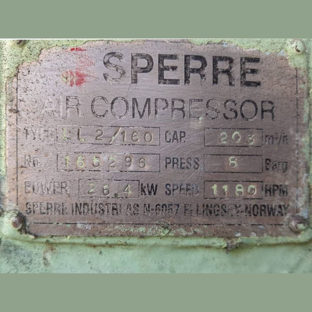The Sperre LL2/160 compressor is known in the marine industry for its robust construction, operational reliability, and long service life, making it a trusted choice for shipowners, marine engineers, and maintenance operators worldwide.